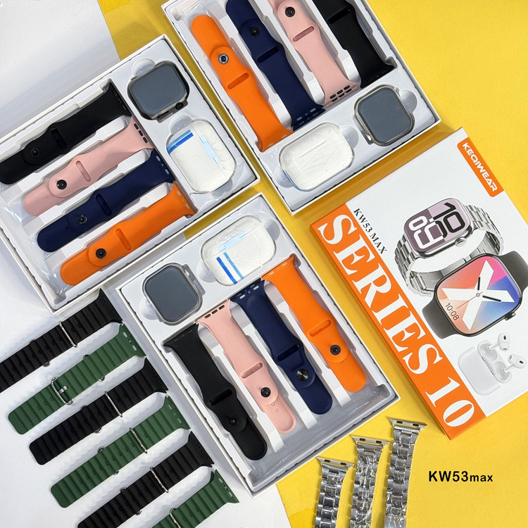 ساعت هوشمند سری 10 با ایرپاد هدیه با 7 بند کد 53 با بدنه مشکی